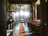 | Inneres der Holzkirche |