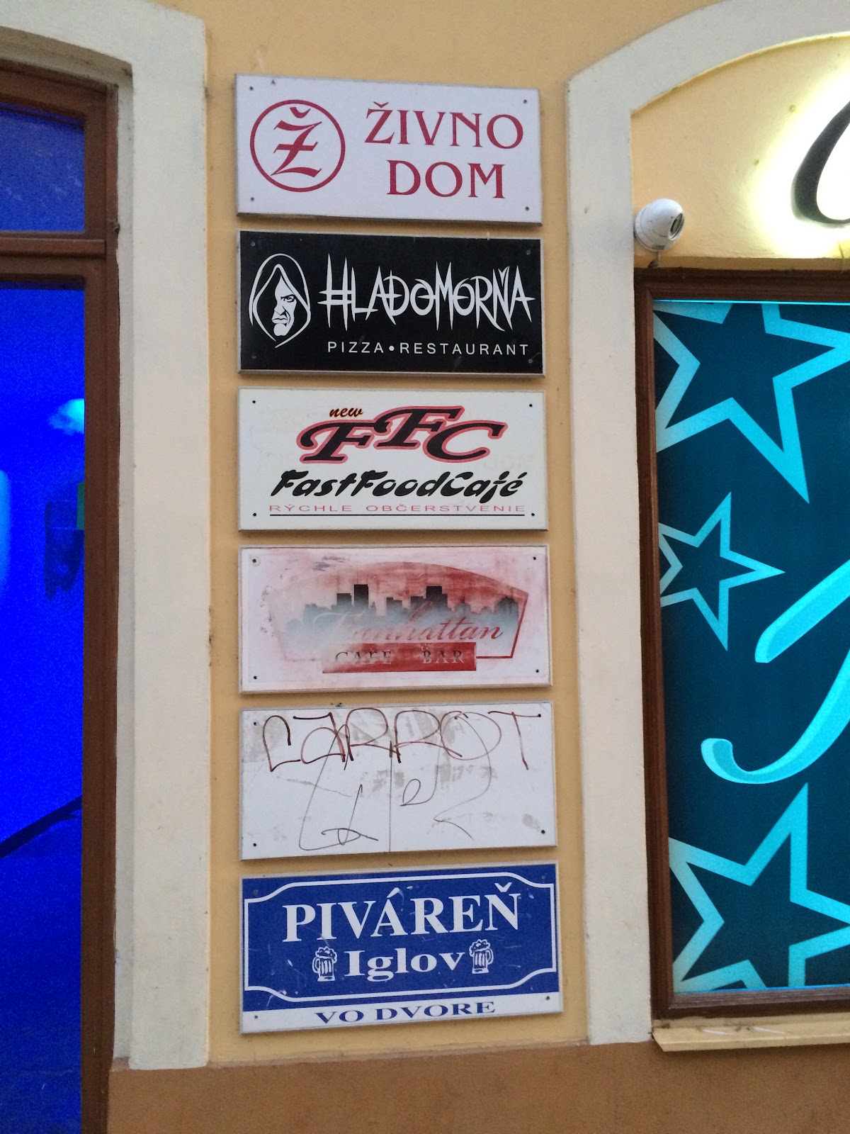Von Kuneschhau bin ich dann mit Auto ein großes Stück nach Osten gefahren. Es hat zwar nicht ganz in die Unterzips gereicht, wo ich eigentlich hinfahren wollte (und heute hinfahre), aber zumindest bin ich bis Zipser Neudorf gekommen, das auf Slowakisch Spišská Nová Ves heißt und auf Ungarisch Igló. Dieser Name hat mich schon immer fasziniert, vor allem weil er klar slavisch ist (angeblich zu *Iglovъ, igla ‘Nadel’), jetzt habe ich hier zum ersten Mal übernachtet. Im Hotel gibt es übrigens jede Menge Ausländer/innen, allerdings sind es alles Tschech/innen… Interessant hier die Namen der Restaurants. Ich bin lieber nicht in die Pizzeria Hladomorňa gegangen (das heißt nämlich ‘Hungerturm’), sondern lieber ins Restaurant Zbrojnoš (das ist wenigstens nur ein ‘Waffenträger’).