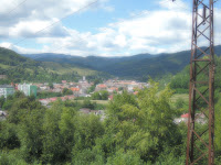 Ich habe die Stadt zunächst von oben fotografiert, als ich dann hineinfuhr, war ich schnell wieder draußen, die Beschilderung ist mangelhaft und ein Schild zum Zentrum habe ich nicht gesehen. Aber ich fuhr dann zurück und war bald im Zentrum, wo sich in langen Straßen kleine Häuschen aneinanderreihen – genau so stelle ich mir eine Siedlung von Bergleuten vor. Die Straßen waren belebt, vor allem von Kindern, und eigentlich alle waren Roma.