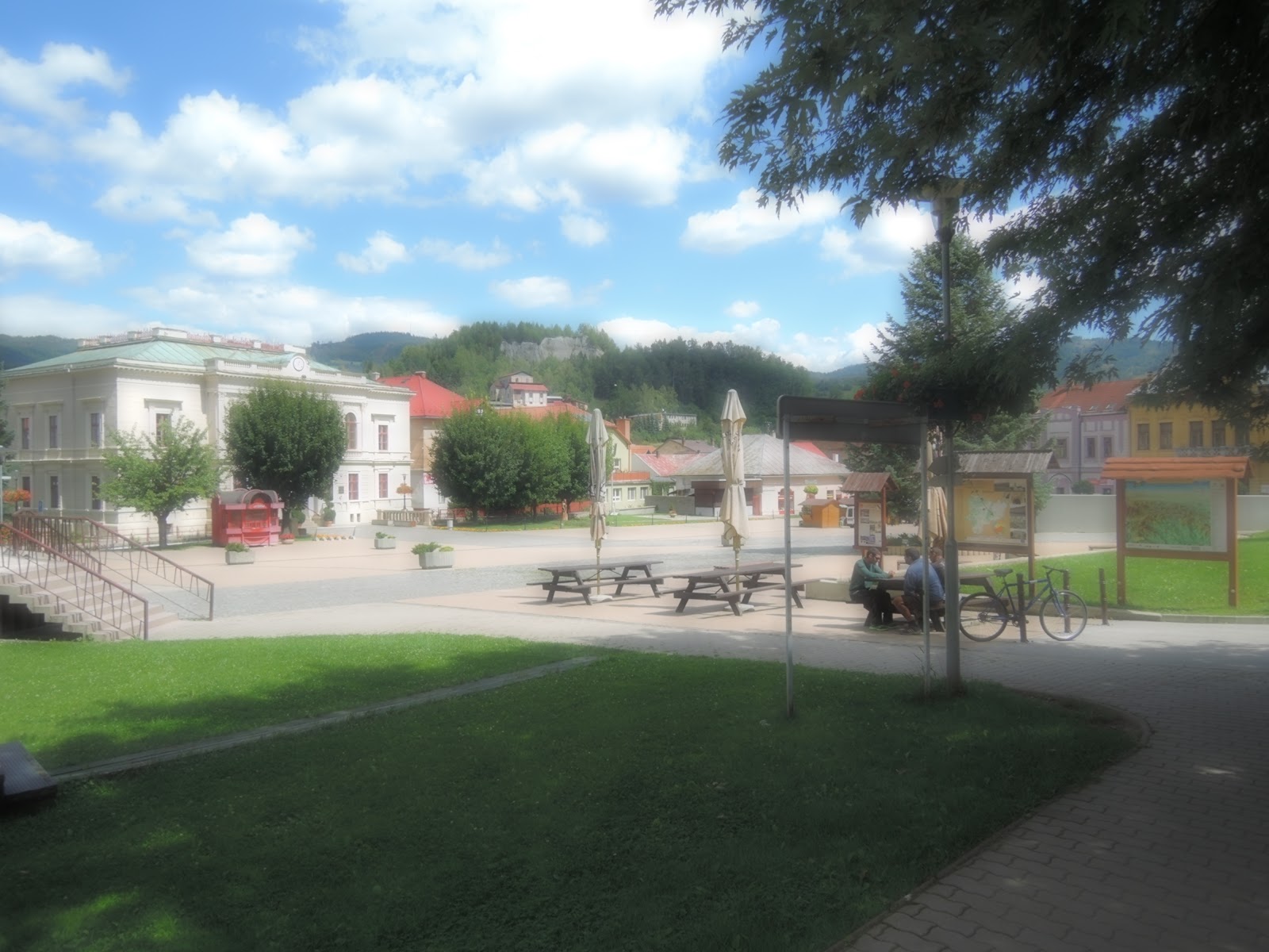 Jetzt aber zu Dobšiná. Eigentlich hatte ich ja schon vorgestern dort hinfahren und dort auch übernachten wollen. Ich war nur etwas spät dran und ängstlich, ob ich so schnell ein Hotel finden würde. Und diese Befürchtung war mehr als berechtigt, denn ein Hotel der Art, wie ich sie suche, gibt es in Dobšiná überhaupt nicht. Die im 14. Jahrhundert gegründete Bergbaustadt hat nämlich ihre guten Zeiten schon lange hinter sich. Seit 1880 sinkt die Einwohnerzahl (wie hoch sie damals war, habe ich aber nicht gefunden), heute wohnen dort ca. 5600 Menschen – in einer Stadt, die erkennbar auf viel mehr Menschen angelegt ist.