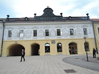 Abends bin ich noch in Spišská Nová Ves herumgelaufen, war zunächst auf dem Friedhof und dann in der Stadt. Der Friedhof zeigt sehr deutlich, dass die Stadt schon Ende des 19. Jahrhunderts weitgehend slowakisiert war (ursprünglich war es auch eine der Zipser Städte). Nur mit Mühe findet man noch deutsche und ungarische Gräber. In der Stadt habe ich das 1763 erbaute „Provinzhaus‟ bewundert, und dann den Hauptplatz, wo am einen Ende die evangelische Kirche steht, am anderen Ende das Stadttheater und in der Mitte die katholische Kirche. Es wird also jede Konfession versorgt…