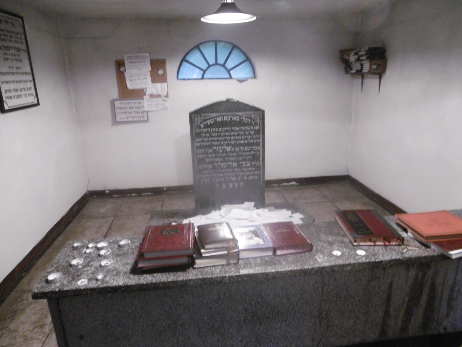 Friedhofswächterin, das Dresdner Ehepaar und ich) in dem Ohel festgehalten waren. Irgendwann entschlossen wir uns, doch hinauszugehen – und wurden unerwartet in den nächsten Ohel geleitet, wo Zwi Elimelech Schapiro von Dynow (1785–1841) liegt, der zeitweise auch Rabbiner von Munkács war. Auch er wird offenbar bis heute von Anhängern verehrt.