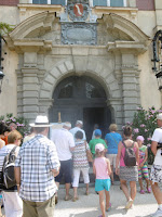 Jetzt zum gestrigen Tag: Ich hatte mir als wesentliche Unternehmung vor allem die Besichtigung des Schlosses vorgenommen, und dann auch weiterer Sehenswürdigkeiten der Stadt wie der Synagoge. Die Besichtigung des Schlosses ist eine größere Aktion, die Führung dauert zwei Stunden (wenn man alles anschauen möchte) und man muss sich wie in den Metropolen eine Eintrittskarte mit Uhrzeit kaufen. Meine Gruppe war um 11:40 an der Reihe und wurde geführt von einem drahtigen älteren Herrn mit Vornamen Adolf (den hat uns er nicht mitgeteilt, sondern er stand auf dem Namensschild). Der Vorname lässt auf ein länger zurückliegendes Geburtsjahr schließen. Und wie ich später anhand von Vor- und Nachnamen recherchiert habe, ist er Jahrgang 1934. Die Führung war aber wirklich sehr gut und man merkte, dass er viel Erfahrung hat. Sehr gefallen hat mir auch, dass er die Kinder nach vorne bat und öfter auch den Kindern etwas gezeigt hat, bevor die Erwachsenen an der Reihe waren (z.B. eine kleine Couch für eine Katze oder einen Hund).