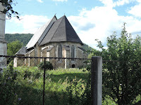 Schon kurz vor Rožňava und kurz danach gab es mehrere Wärmegewitter, gleichzeitig fuhr ich durch ein wunderschönes Gebirge (wo man sicher auch wandern kann, aber nicht diesmal). Danach habe ich nur noch einmal gehalten, in dem kleinen Ort Plešivec / Pelsőc / Pleissnitz, wo laut Tafel an der Straße eine reformierte Kirche zu besichtigen ist. Die entpuppte sich dann als eine mehrfach umgebaute gotische Kirche, an die man aber nicht nahe dran kam, weil sie eingezäunt ist (und geschlossen war).