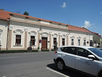 Nachdem das geklärt war, konnte ich zu einem längeren Spaziergang durch die Stadt aufbrechen. An alten Bauwerken gibt es da nicht viel, höchstens die katholische Kirche, das Rathaus, das Gymnasium. Wie ich inzwischen gelesen habe, soll es auch ein Schlösschen aus dem 18. Jahrhundert geben, das muss ich noch suchen. Was man schön studieren kann, ist aber das Nebeneinander von Slowakisch und Ungarisch, etwa wenn am Gymnasium übereinander Gymnázium (slowakisch) und Gimnázium (Ungarisch) stehen. Oder wenn der Schnellimbiss von Juraj Jančkár auf Ungarisch Gyorsbüfé George heißt. Ich habe auch einen Einkauf getätigt, und zwar hatte ich irgendwo meinen USB-Stick verloren und brauchte einen neuen. Fündig wurde ich im Geschäft des Providers Orange, wo man Ungarisch und Slowakisch nebeneinander hören konnte. Ich bin aber offenbar an eine slowakische Verkäuferin geraten, die ganz entgeistert war, als ich nach dem Kauf noch wissen wollte, wie USB-Stick auf Ungarisch heißt. In meinem Wörterbuch steht nämlich pendrive – und ich wüsste so gerne, wie man das auf Ungarisch ausspricht.