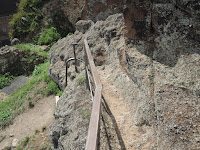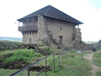 Die Burg besteht einerseits aus den Ruinen, die sich weit in die Höhe hinaufziehen, andererseits aus dem Burgmuseum, das jede volle Stunde öffnet. Ich bin erst in der Burg herumgelaufen, wobei die Treppen zum Teil so sind, dass man seinem Orthopäden besser keine Bilder davon zeigen sollte. Von oben hat man einen schönen Blick, die Gebäude sind aber so zerstört, dass man sich kein richtiges Bild mehr vom früheren Aussehen machen kann. Es gibt auch keine Erläuterungen, d.h. auf den wenigen Informationstafeln steht nur etwas über die Geschichte der Burg, die Berge, die man sieht, und die Fauna.