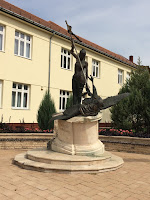 Und dann bin ich nach Balassagyarmat (slowakisch Balážske Ďarmoty, deutsch Jahrmarkt) weitergefahren, wo ich vor vierJahren mal mehrere Tage verbracht habe. Mich hat die Stadt damals vor allem deshalb interessiert, weil dort Josef Dobrovský geboren ist, aber davon sind keine Spuren mehr zu entdecken. Balassagyarmat ist aber auch sonst interessant, insbesondere als Hauptort der sog. Palóczen. Das ist der nördlichste ungarische Stamm (auch die Ungarn in der Slowakei gehören dazu) mit einem etwas stärker von der Standardsprache abweichenden Dialekt, der vermutlich ein slowakisches Substrat aufweist (z.B. werden ö undü teilweise durch e und i ersetzt). Über die Palóczen hat beispielsweise Kálmán Mikszáth von Kiscsoltó (1847–1910)geschrieben, ein aus der Gegend stammender Schriftsteller – und bei weitem nicht der einzige Schriftsteller, der hier sein Unwesen getrieben hat. Die Stadt ist voller Gedenktafeln an ungarische Geistesgrößen… Wichtig ist vor allem noch Imre Madách (1823–1864), der die „Tragödie des Menschen‟ (Az ember tragédiája) geschrieben hat, eine Art ungarischer Faust. Außerdem ist Balassagyarmat dadurch bedeutsam, dass sich die Stadt 1919 dagegen gewehrt hat, an die Tschechoslowakei angegliedert zu werden. Daher trägt sie den Ehrentitel Civitas fortissima.