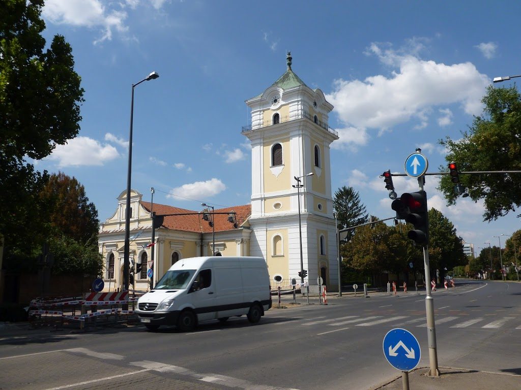 Auch dieser Bericht wird wieder etwas kürzer, denn so richtig viel kann man in Békéscsaba nicht erleben. Es gibt zwar ein Museum, das einem mir bislang unbekannten ungarischen Historienmaler gewidmet ist, aber dafür habe ich im Moment keinen Bedarf – zumal ich auch ahne, in welcher Sprache die Bilder beschriftet sind. Statt dessen habe ich mich am mittleren Vormittag auf die Suche nach der slowakischen Minderheit gemacht. Das Kulturhaus der Minderheit hatte ich bald gefunden, habe es aber zunächst in großem Bogen umkreist, weil vor dem Haus eine Jugendgruppe saß, uniformiert in roten T-Shirts. Etwa 100 m weiter stand ein Bus aus dem slowakischen Pezinok, die Jugendlichen waren also keine Hiesigen und auf Besuch in Békéscsaba. Es gibt auch wieder zwei evangelische Kirchen, eine kleine und eine große, beide waren geschlossen. Dem Aushang an der großen entnahm ich aber, dass es zumindest einen slowakischen Gottesdienst am Sonntag um 8:45 gibt, in den werde ich morgen also gehen.