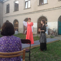 Wesentlichen aus Mode vom 15.-20. Jahrhundert. Und beim Empfang im Garten, zu dem ich auch gegangen bin, gab es zum Abschluss eine Modeschau, bei der junge Mädchen die Mode vorführten, mit allen Schikanen, vorgestellt von der Hauptorganisatorin, die auch zu der Theatergruppe zu gehören scheint. Ich bin dann nicht ganz bis zum Ende geblieben.