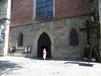 Nach dem Frühstück habe ich begonnen, die Stadt zu besichtigen. Zunächst war ich auf dem Hauptplatz mit dem imposanten Rathaus (in der heutigen Form vom Ende des 19. Jahrhunderts) und dem Denkmal für den heiligen Papst, dann in der ältesten Kirche der Stadt, die allerdings im Laufe der Jahrhunderte so oft umgebaut wurde, dass ich Schwierigkeiten habe, sie noch als gotisch wahrzunehmen. Hier wie auch in anderen Kirchen war das  deutlich dadurch erschwert, dass überall jemand betet, Gottesdienste anfangen, Gottesdienste aufhören usw. Da habe ich dann doch Hemmungen, herumzulaufen.