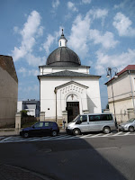 Stary Sącz ist viel kleiner, aber auch sehr schön, mit einem quadratischen Hauptplatz mit z.T. alter Bebauung, vor allem aber einem Klarissenkloster, das hier seit 1280 ansässig ist und von der Hl. Kinga (1224-1292) gegründet wurde. Die Hl. Kinga wurde erst 1999 heilig gesprochen (Seligsprechung 1690) und dementsprechend viel Aufwand wird getrieben, es gibt neue Bauten im Kloster etc. Besonders beeindruckend fand ich, wie nahe man zum Grab hinkommt, wo es auch eine Stelle gibt, wo man Gebete und Bitten einwerfen kann. Was verschiedene Besucher/innen auch tatsächlich nutzten. Über die Person der Hl. Kinga habe ich auf der Rückfahrt